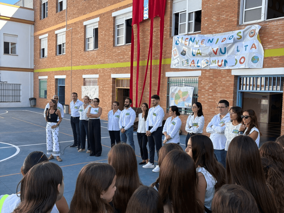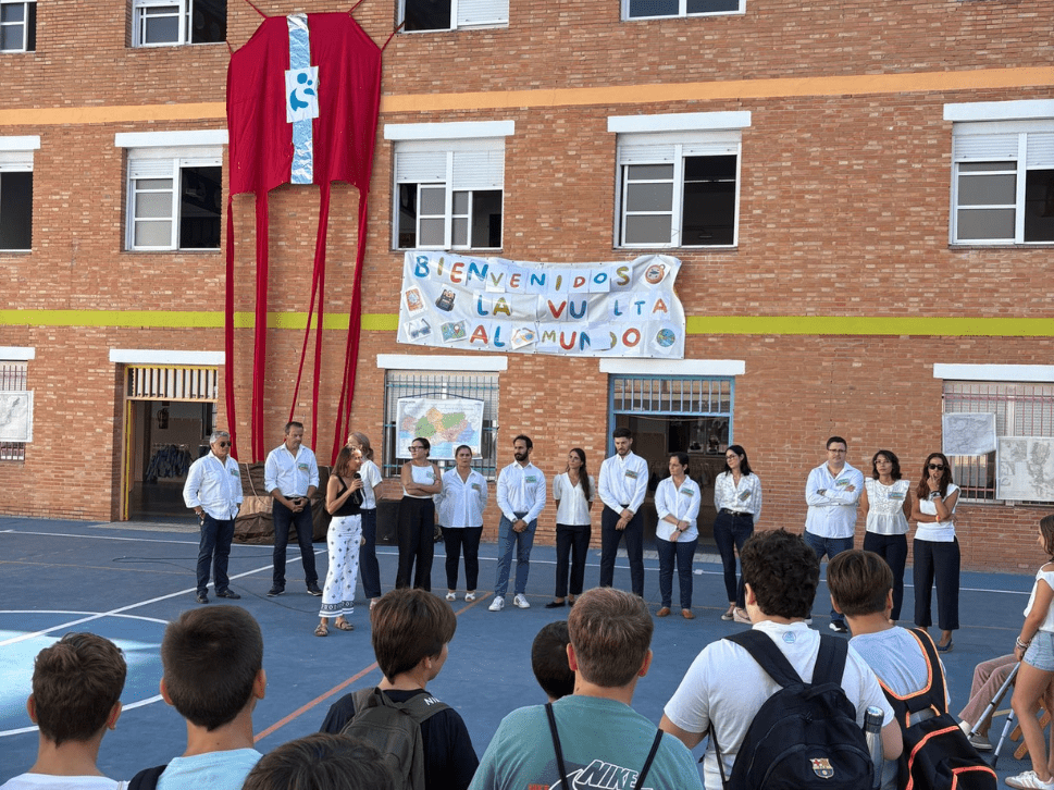 El curso daba comienzo el pasado 15 de septiembre, y los alumnos de secundaria y bachillerato, se dieron cita en el patio azul, con una sorprendente bienvenida por parte del profesorado y la dirección del centro, para sumergirse en la aventura que será este nuevo curso 25/26.